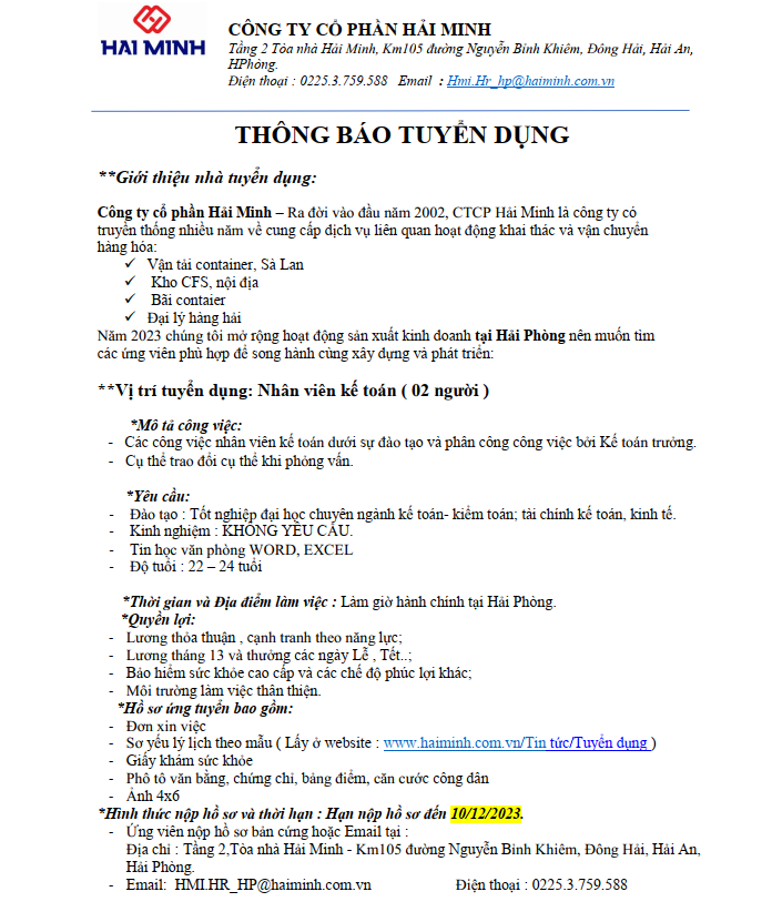 Tuyển dụng - Nhân viên chứng từ (Làm việc tại VP HCM) - Tháng 11/2025