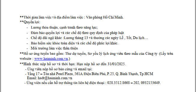 Tuyển dụng - Nhân viên chứng từ (Làm việc tại VP HCM) - Tháng 11/2025