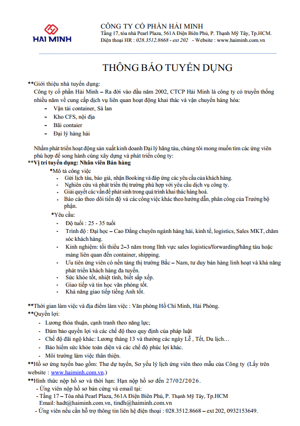 Tuyển dụng- Nhân viên Bán hàng - Tháng 02/2026